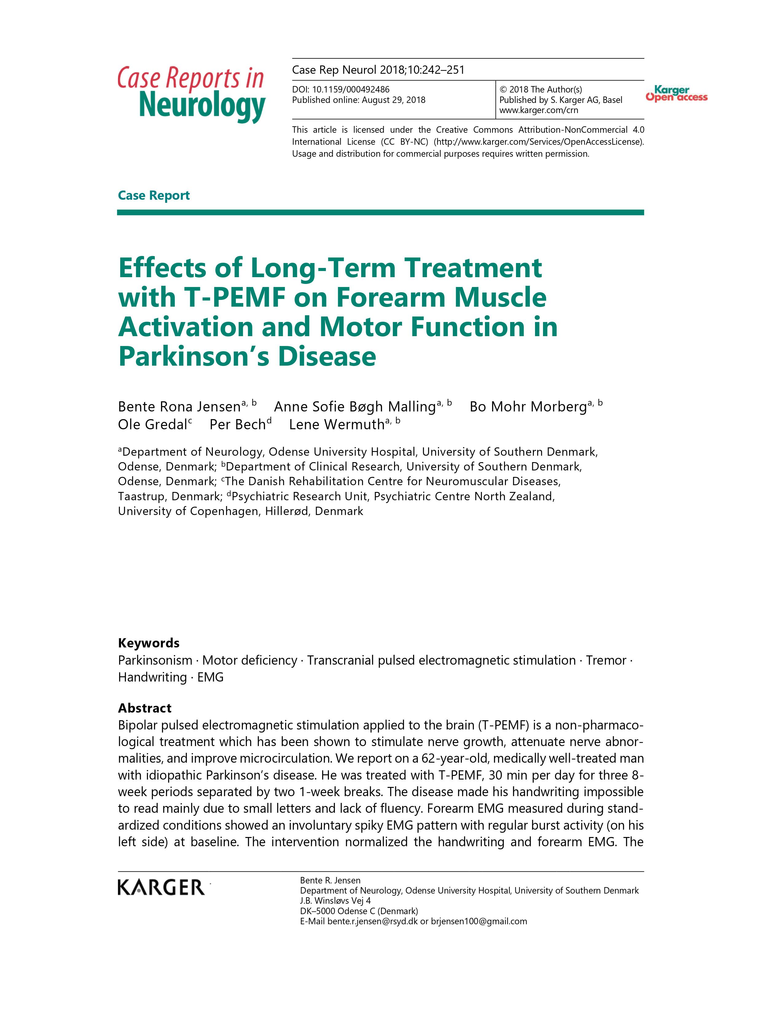 Effects of Long-Term Treatment with T-PEMF on Forearm Muscle Activation and Motor Function in Parkinson’s Disease (2018)